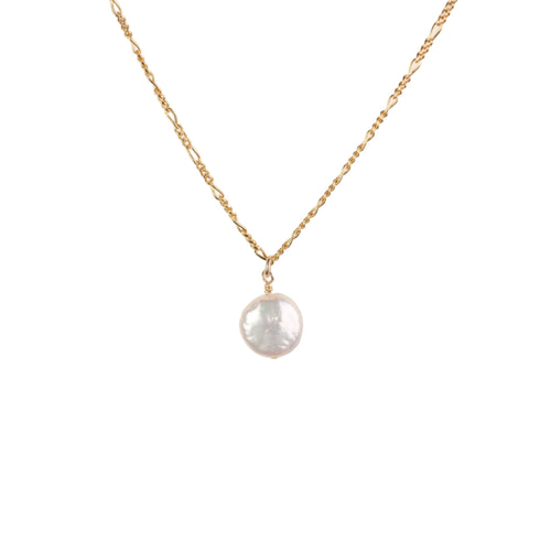 "Stone" Coin Pearl Pendant Adjustable Necklace
